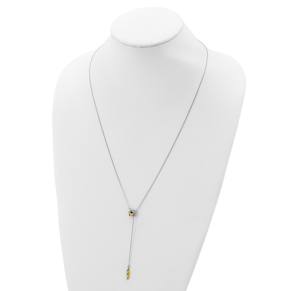 Sterling Silver Rhod-plated & Gold-tone EnmlBee CZs Adjustable Necklace