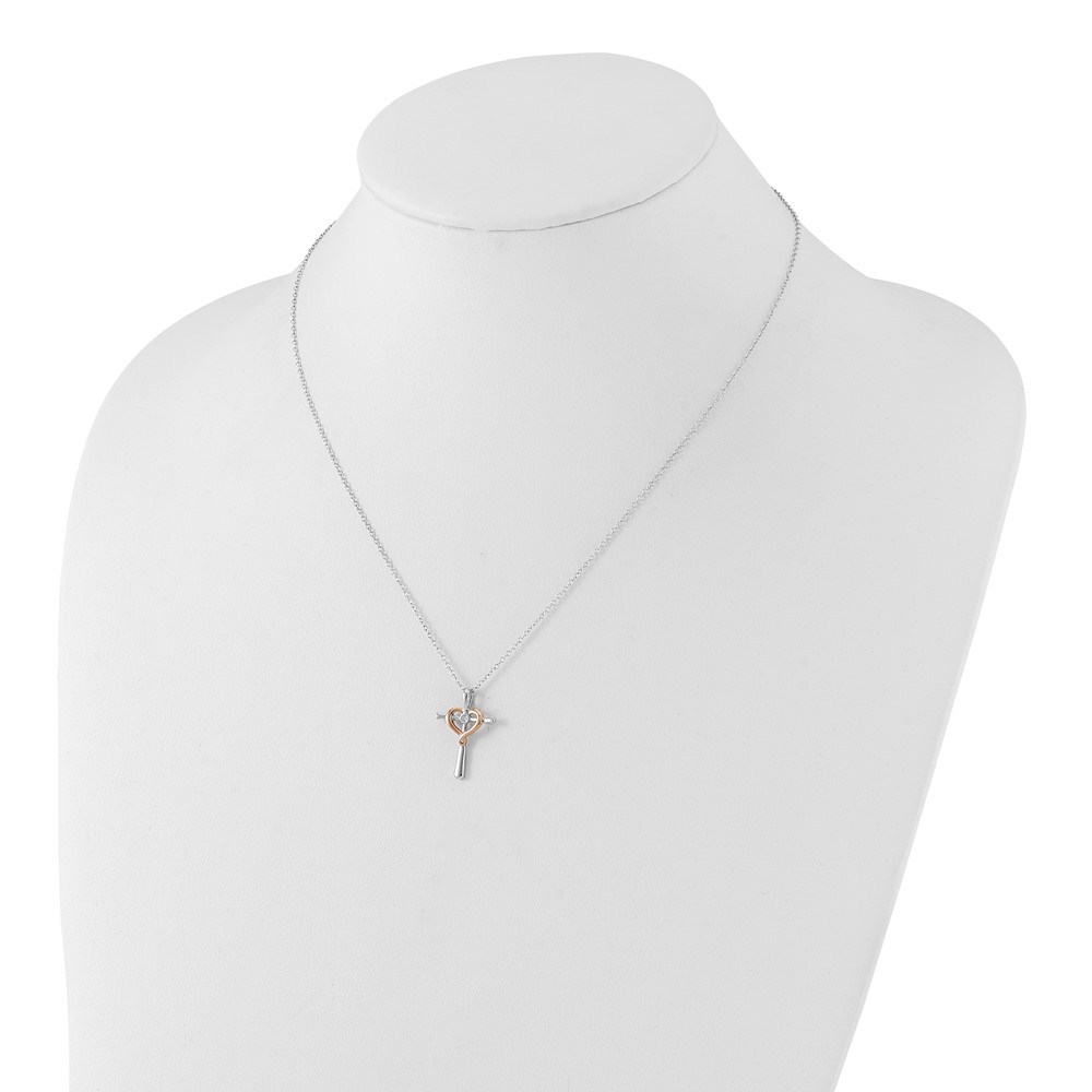 Sterling Silver w/ 10k Rose Accent Diamond Heart Cross Necklace