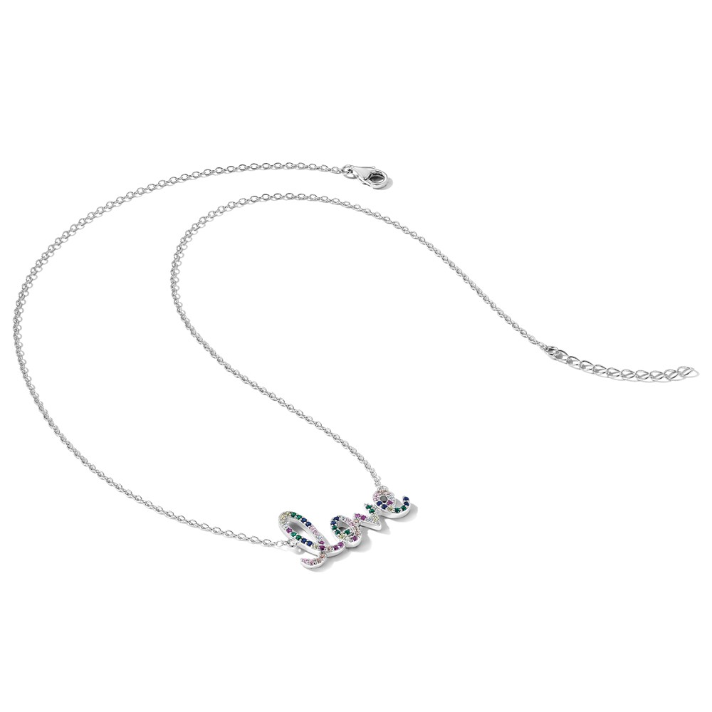Prizma Sterling Silver Rhodium-plated 16 inch Colorful CZ LOVE Necklace with 2 inch Extender