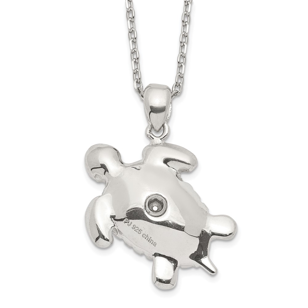 Sterling Silver Rhodium-plated Polished Turtle Ash Holder 18 inch Necklace
