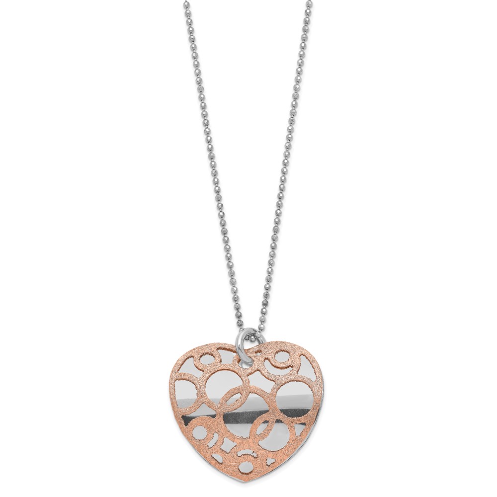 Sterling Silver Rhodium-plated & Rose-tone Heart Necklace