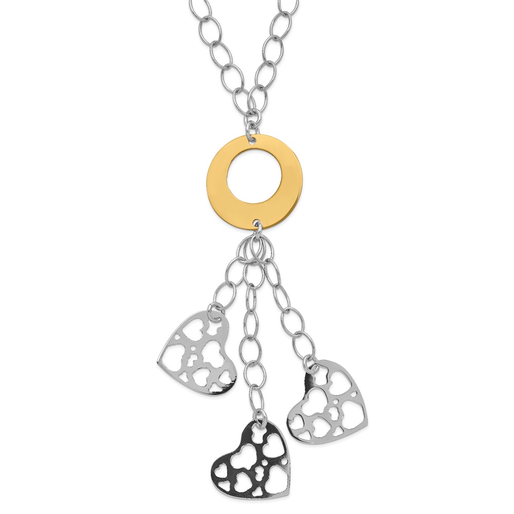 Sterling Silver Rhodium-plated Gold-tone Circle & Heart Y-Drop Necklace