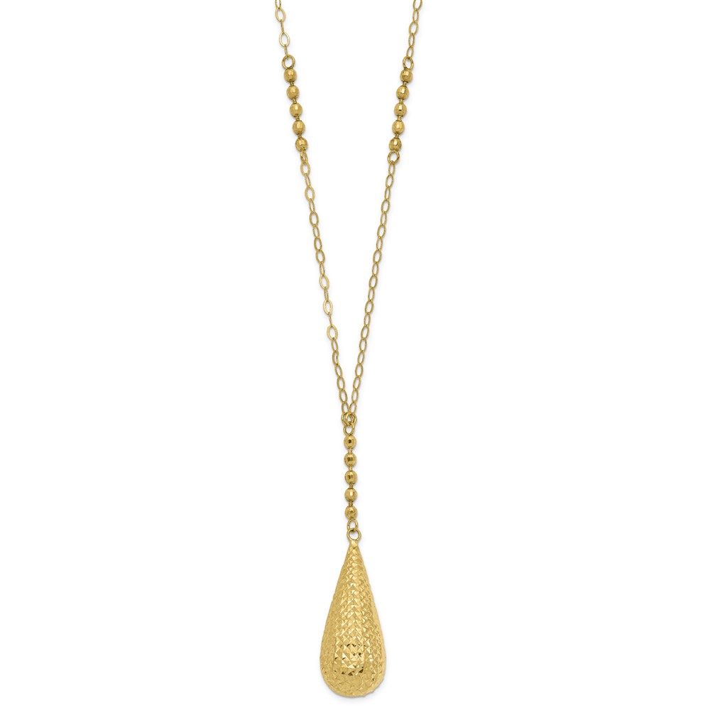 14KY CABLE CHAIN W/ DIA. CUT TEAR DROP PENDANT