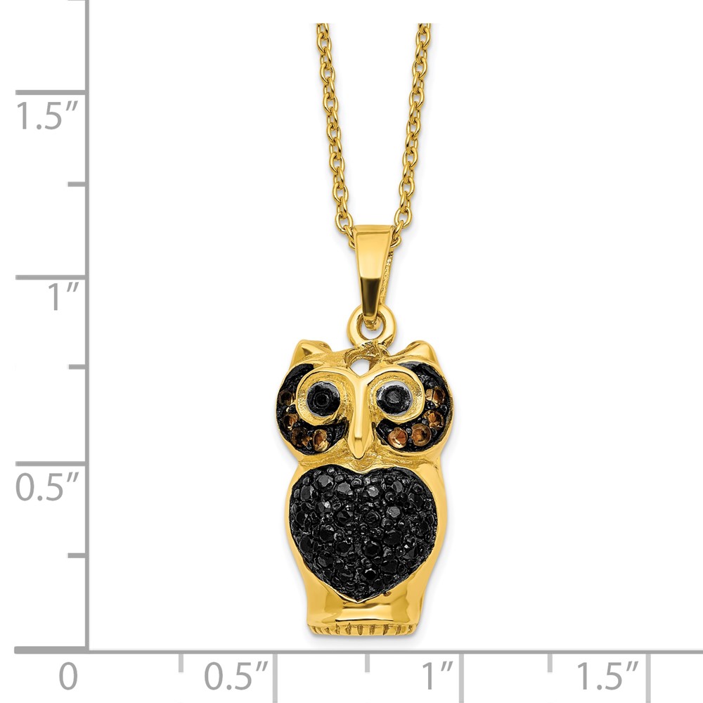 Sterling Silver Gold-tone Black Rhodium CZ Owl w/2 in ext Necklace