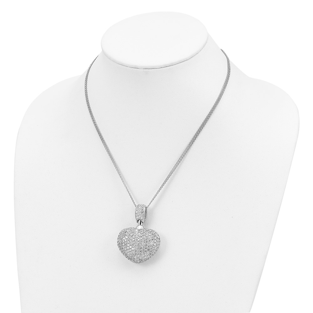 Sterling Silver Rhod Plated CZ Heart Multi Strand Necklace