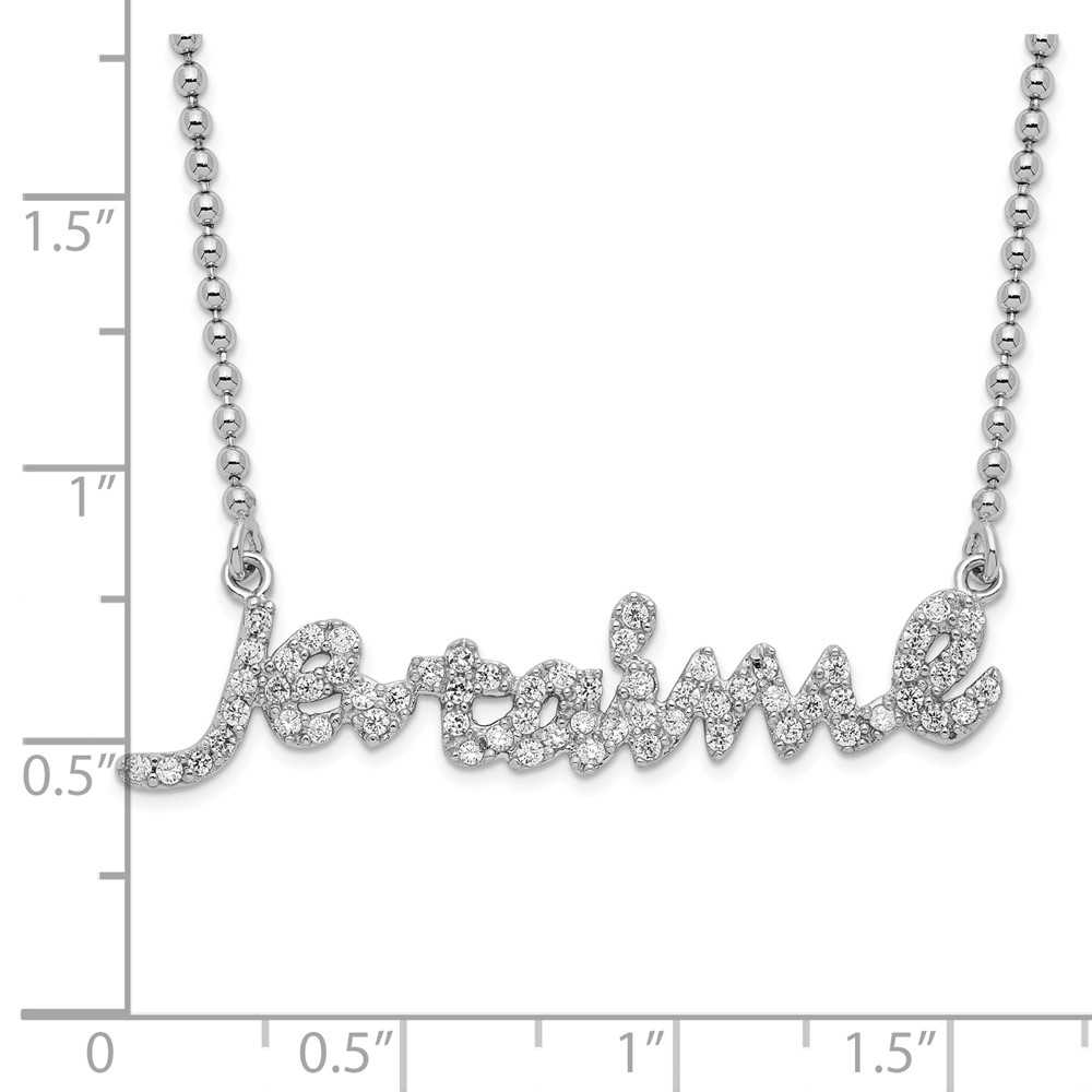 Sterling Silver Rhodium-plated CZ Love in French w/2 in ext. Necklace