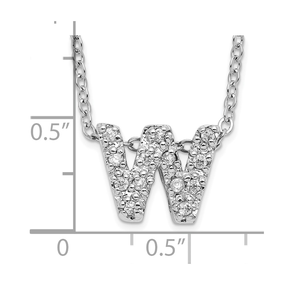 Brass Rhodium-plated White CZ Initial Letter W Necklace