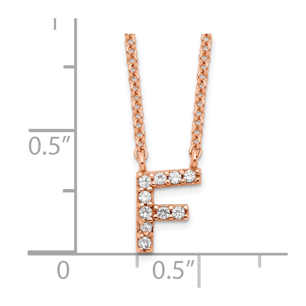 Sterling Silver Rose Gold Plated White CZ Initial F Necklace