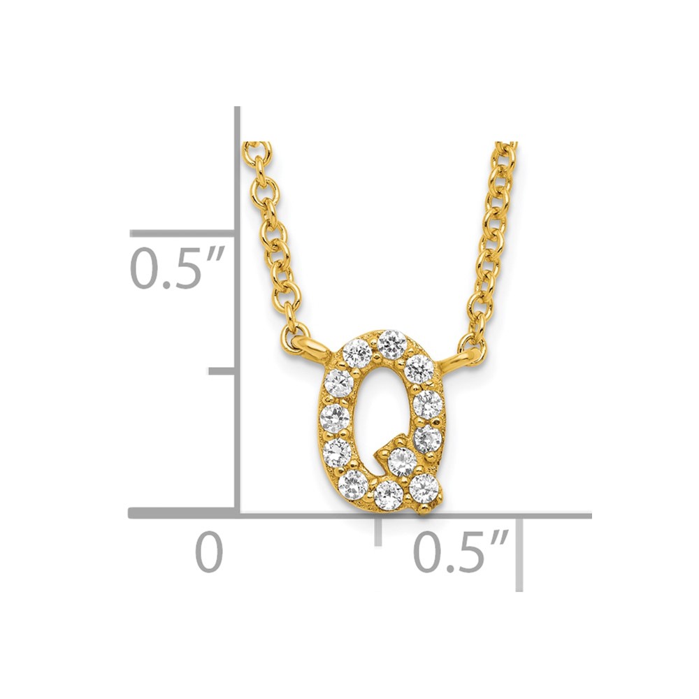 Sterling Silver Gold-plated CZ Initial Q 18 Inch Necklace
