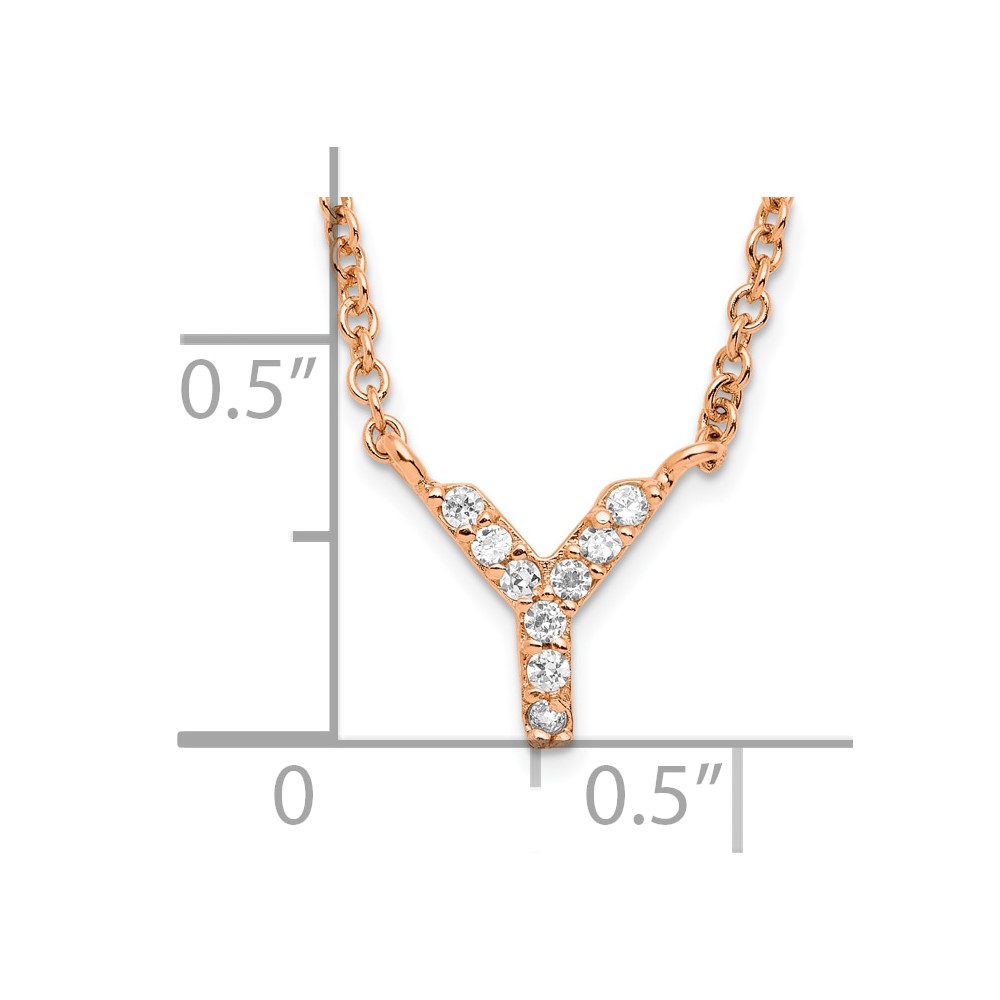 Sterling Silver Rose Gold-plated CZ Initial Y 18 Inch Necklace