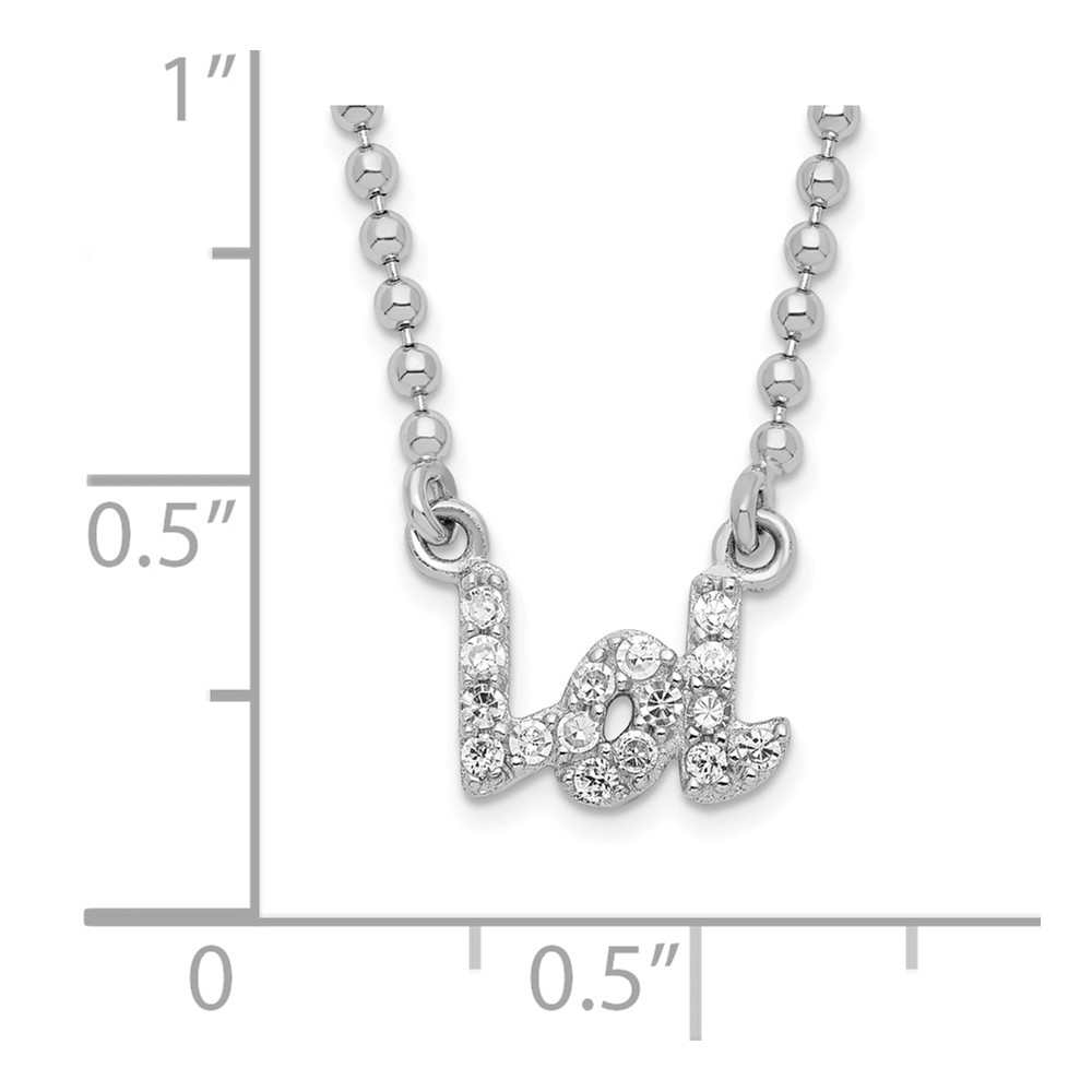 Sterling Silver Rhod-plated White CZ "LOL" Necklace