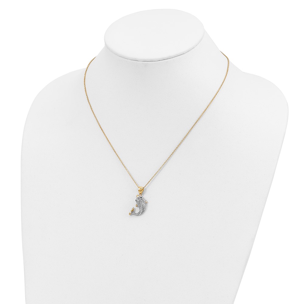 Sterling Silver Gold-tone CZ Dolphin Necklace
