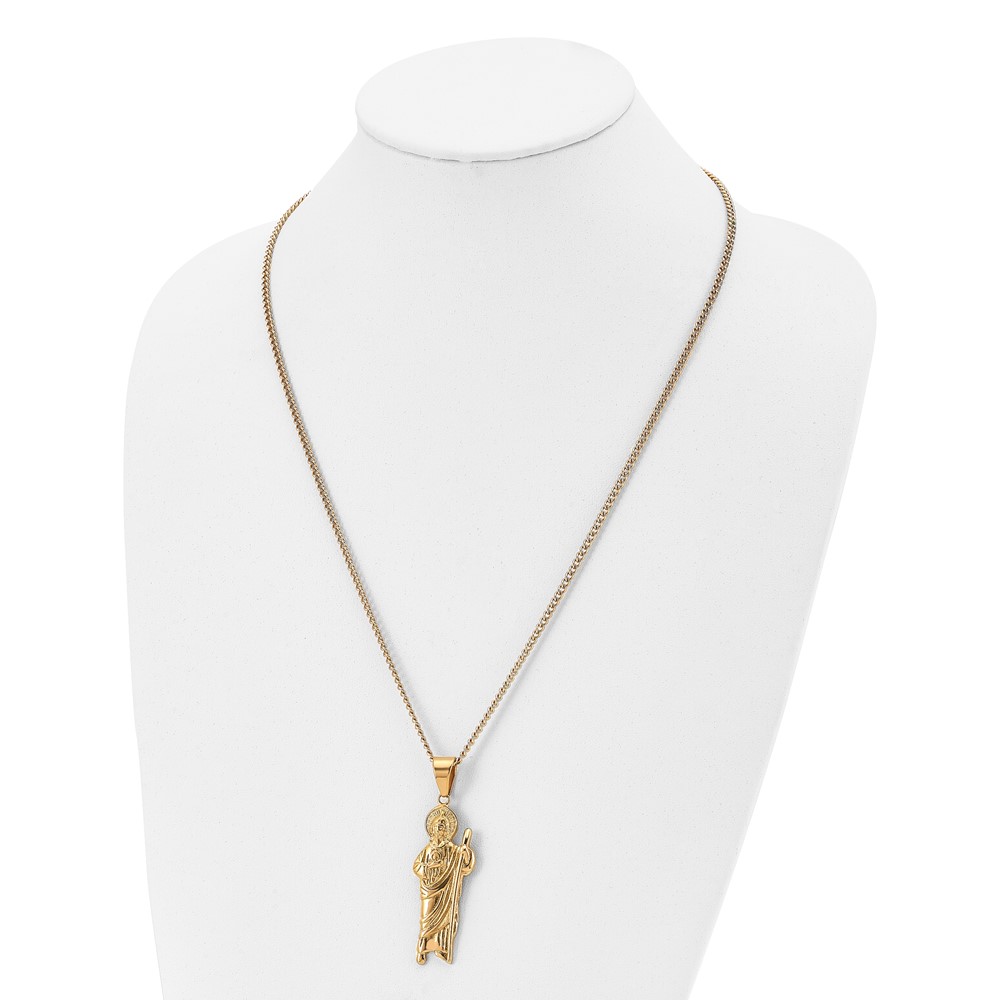 Chisel Stainless Steel Polished Yellow IP-plated Saint Jude Pendant on a 24 inch Curb Chain Necklace