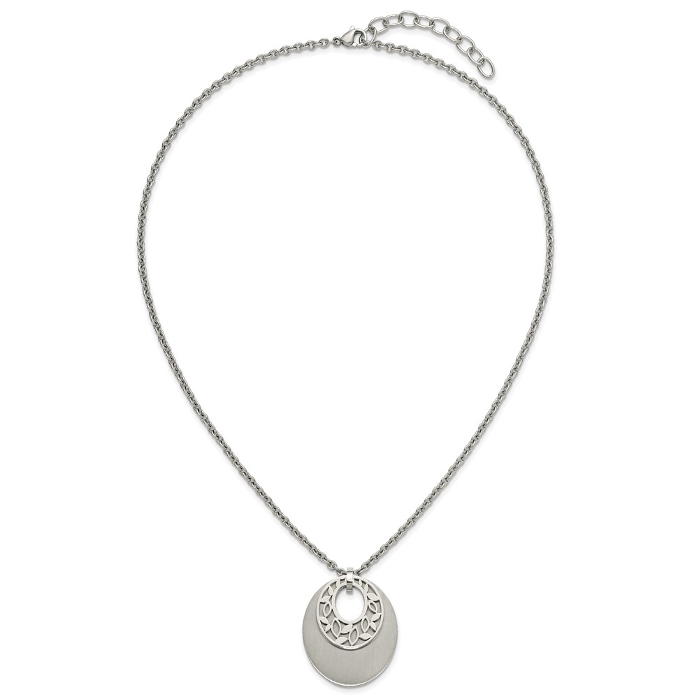 Chisel Stainless Steel Brushed and Polished Flower Cutout Pendant on an 18 inch Cable Chain Plus a 2 inch Extension Necklace
