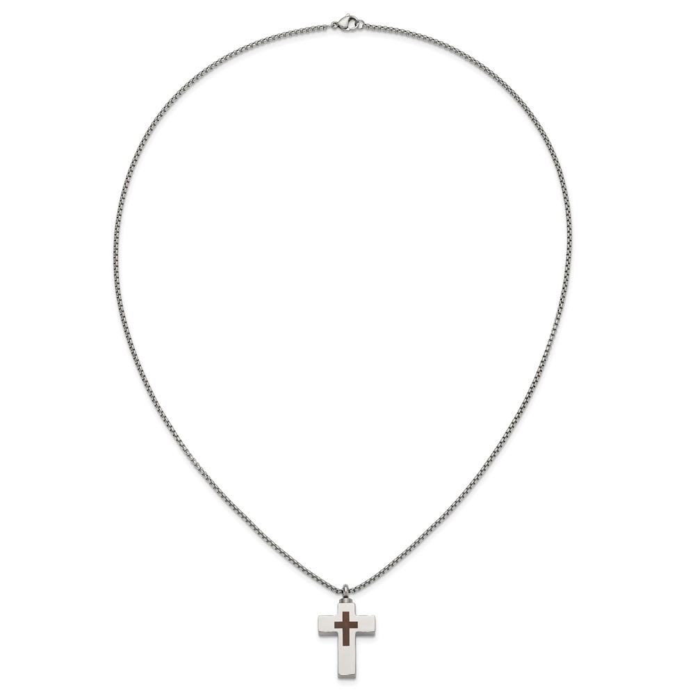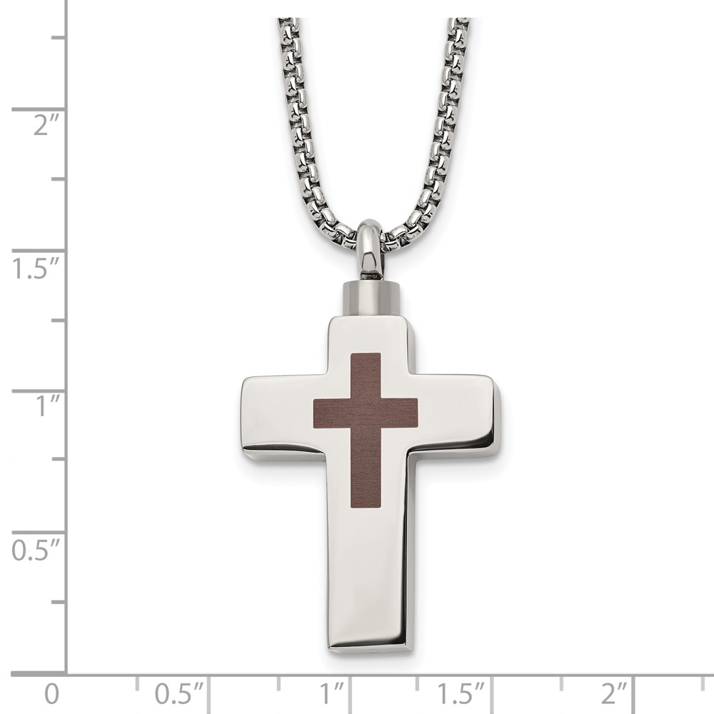 Chisel Stainless Steel Polished and Lasered Cross Ash Holder on a 24in Box Chain Necklace