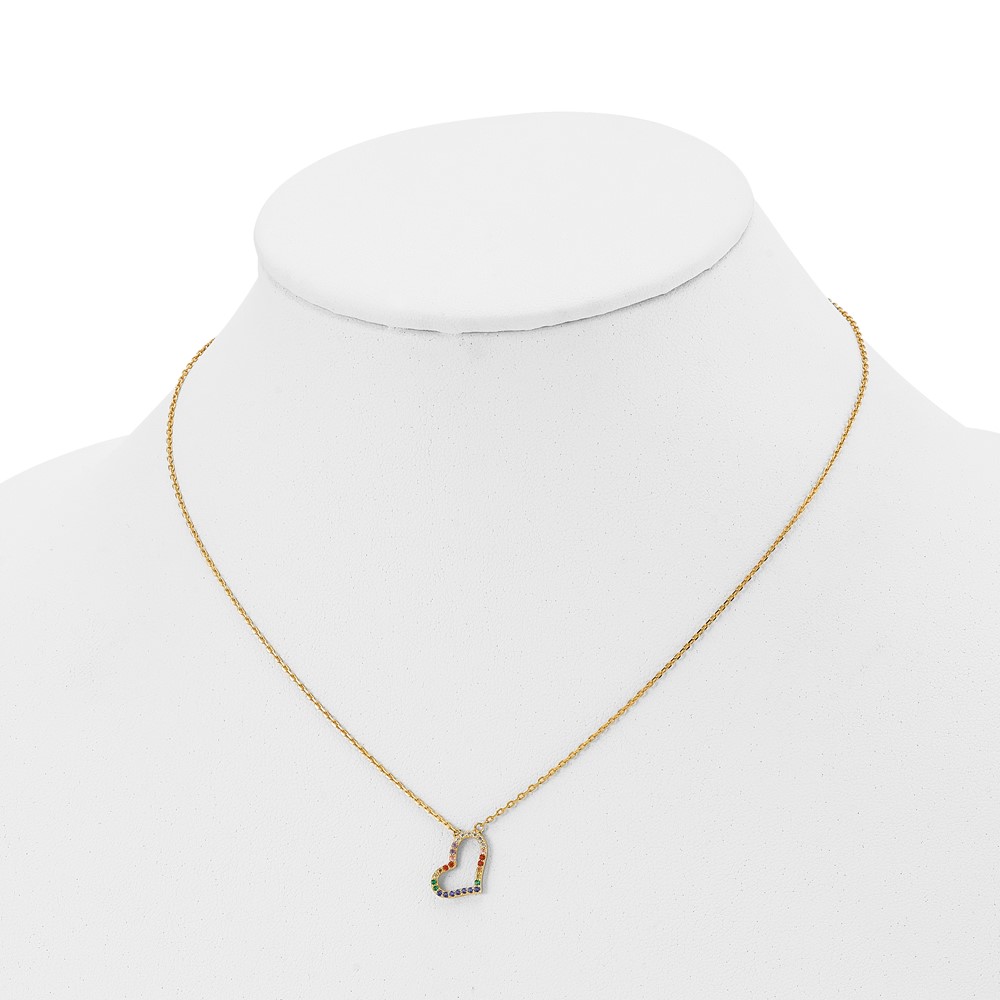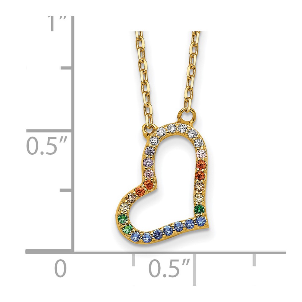 Prizma Sterling Silver Gold-tone 14K Flash Gold-plated 16 inch Colorful CZ Heart Necklace with 2 inch Extender