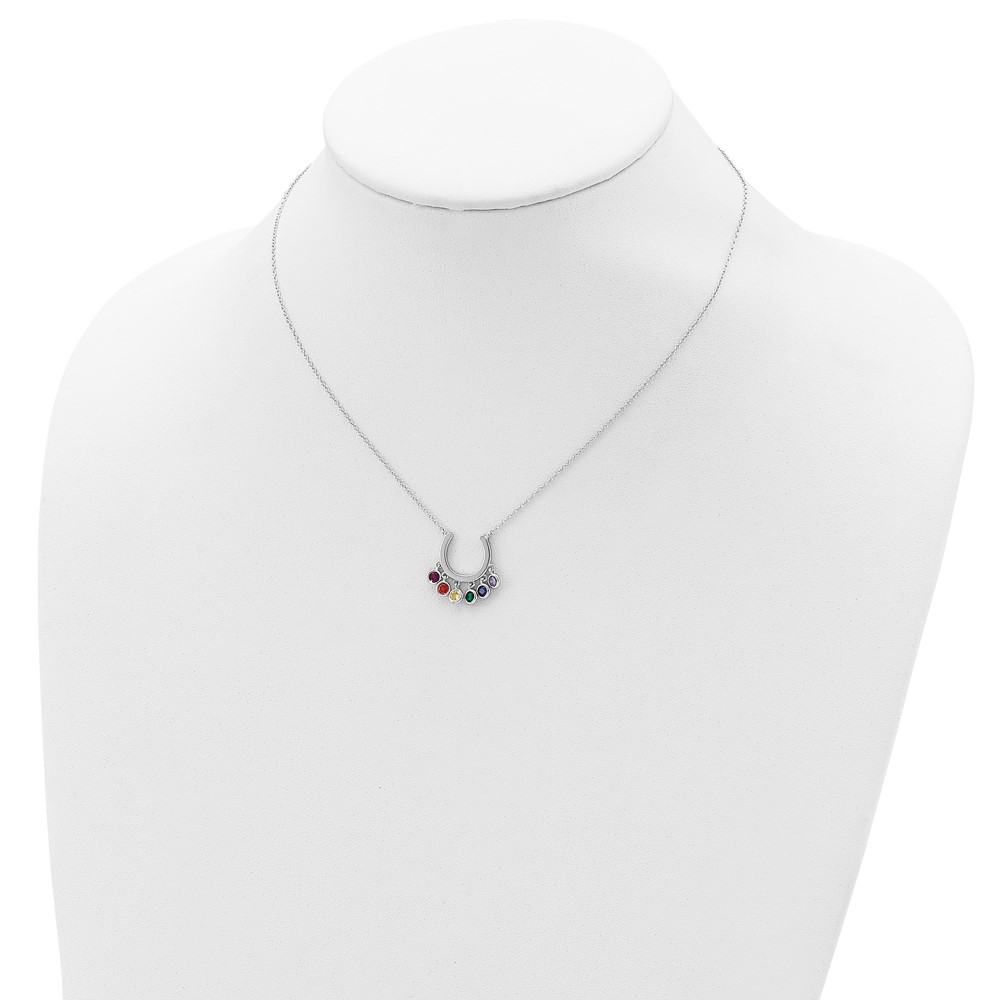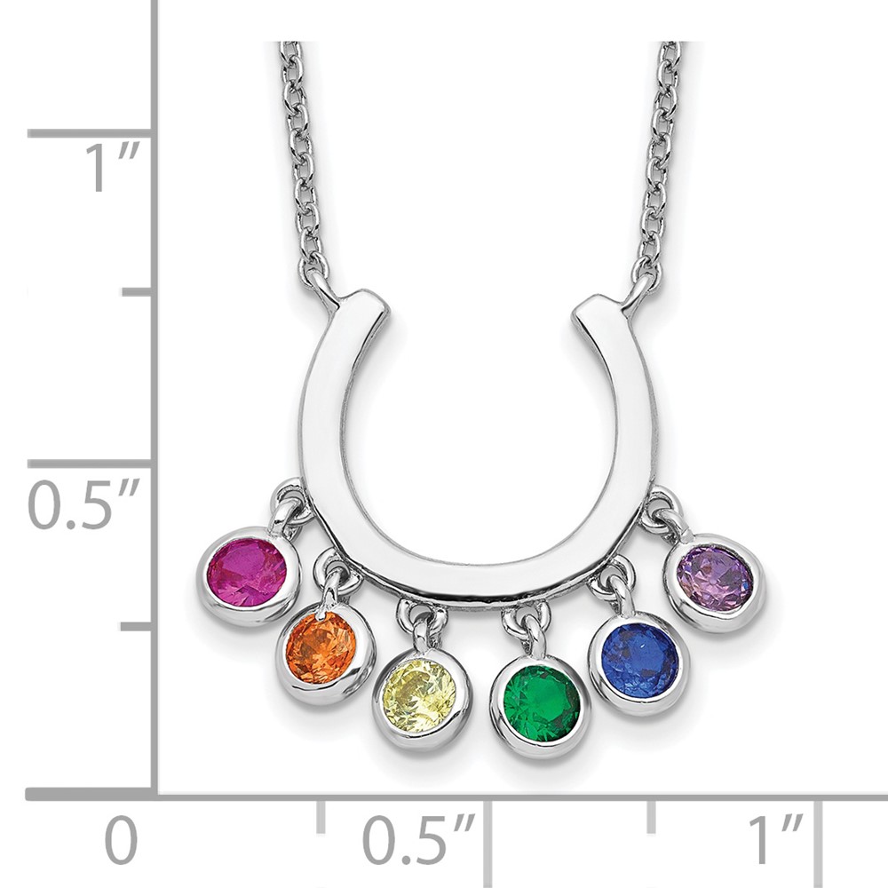 Prizma Sterling Silver Rhodium-plated 16 inch Colorful CZ Horseshoe Necklace with 2 inch Extender