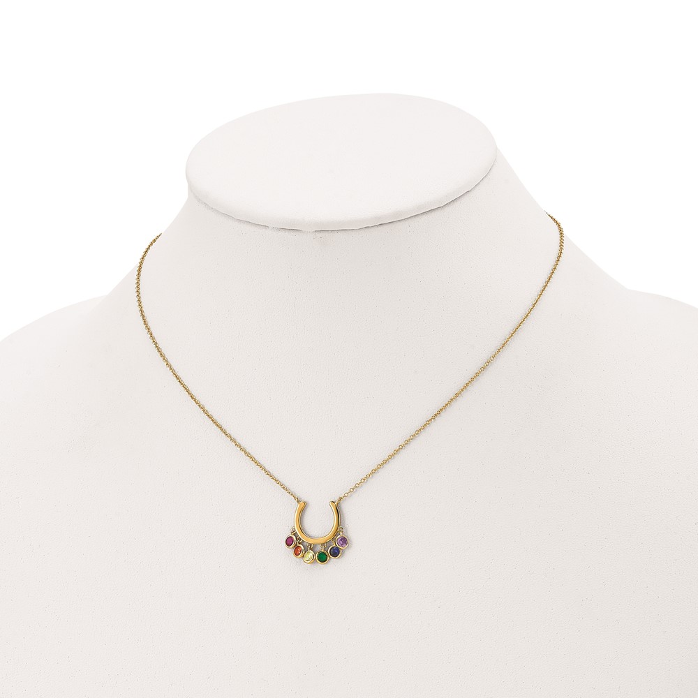 Prizma Sterling Silver Gold-tone 14K Flash Gold-plated 16 inch Colorful CZ Horseshoe Necklace with 2 inch Extender