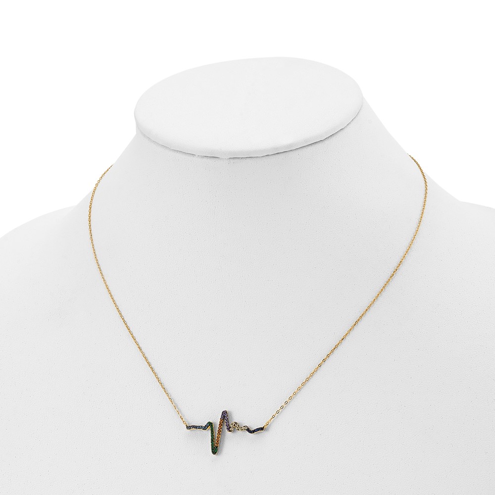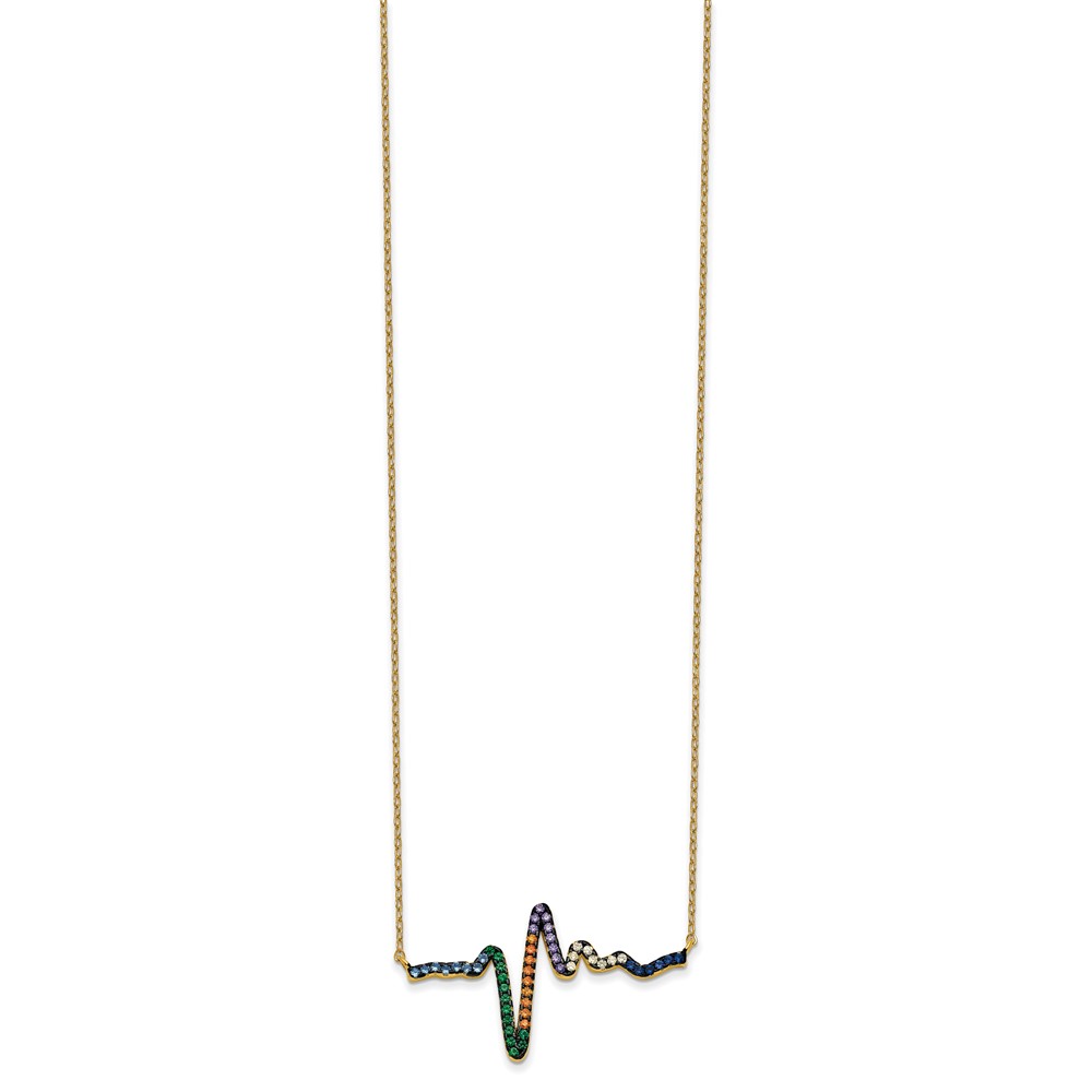 Prizma Sterling Silver Gold-tone 14K Flash Gold-plated 18 inch Colorful CZ Heartbeat Necklace with 1 inch Extender