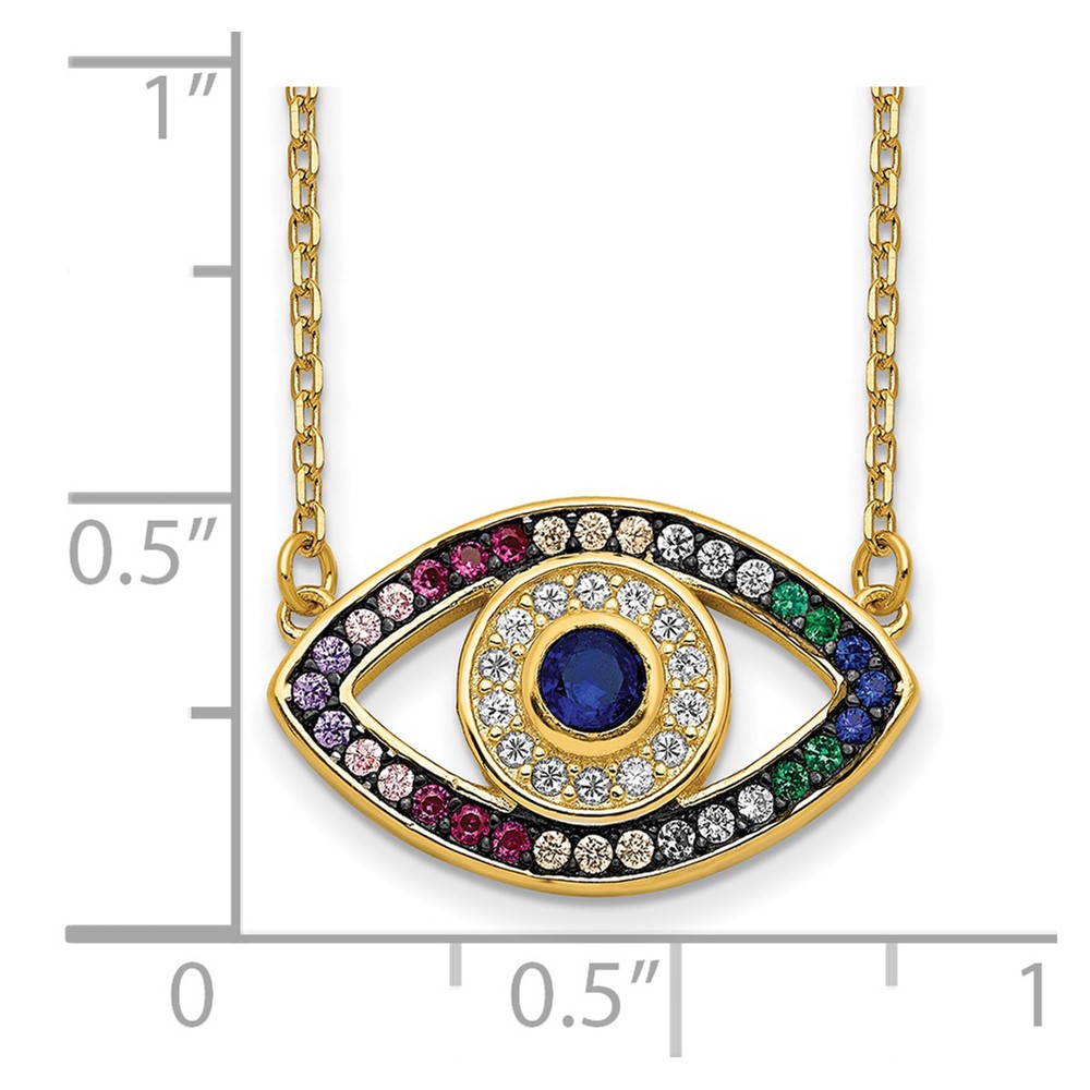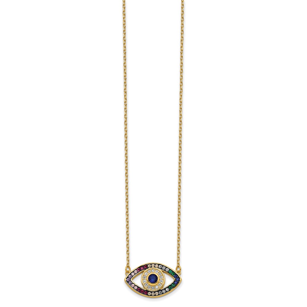 Prizma Sterling Silver Gold-tone 14K Flash Gold-plated 16 inch Colorful CZ Evil Eye Necklace with 2 inch Extender