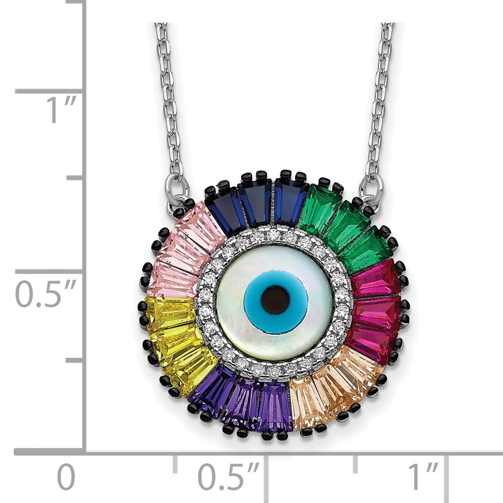 Prizma Sterling Silver Rhodium-plated 16 inch White and Colorful CZ and Glass Evil Eye Necklace with 2 inch Extender