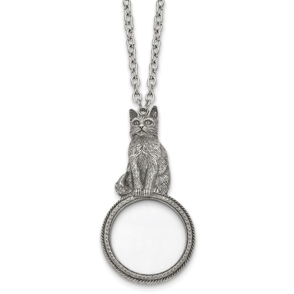 1928 Jewelry Silver-tone Cat Handle 2-3X Magnifying Glass 30 inch Necklace