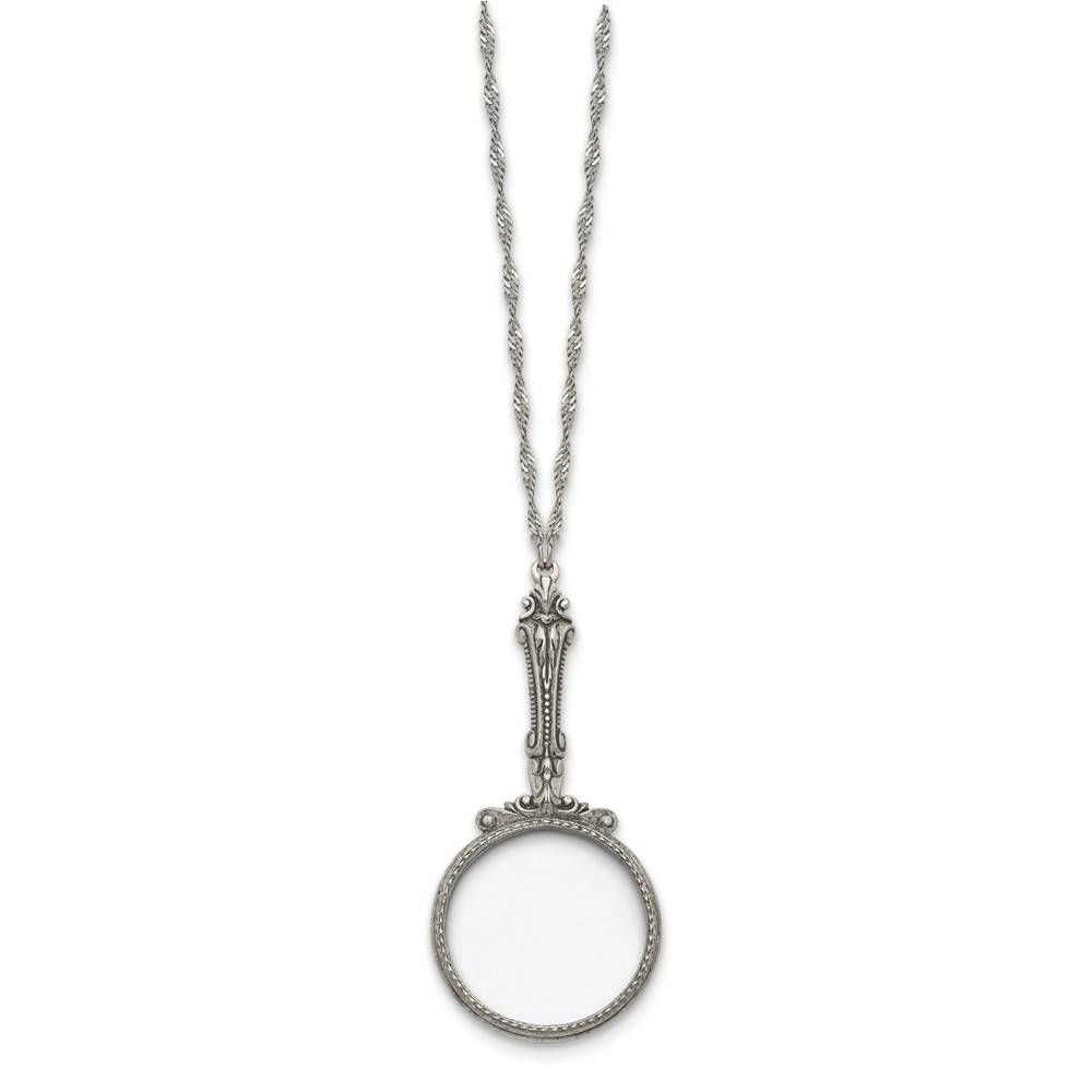 1928 Jewelry Silver-tone Vintage Design Handle 2X Magnifying Glass 28 inch Twisted Necklace