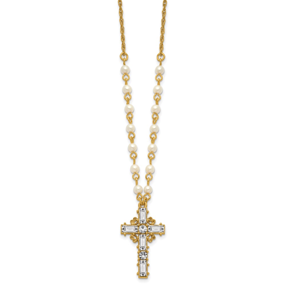 SOF Gold-tone Imitation Pearl Chain and Crystal Cross 20in Necklace