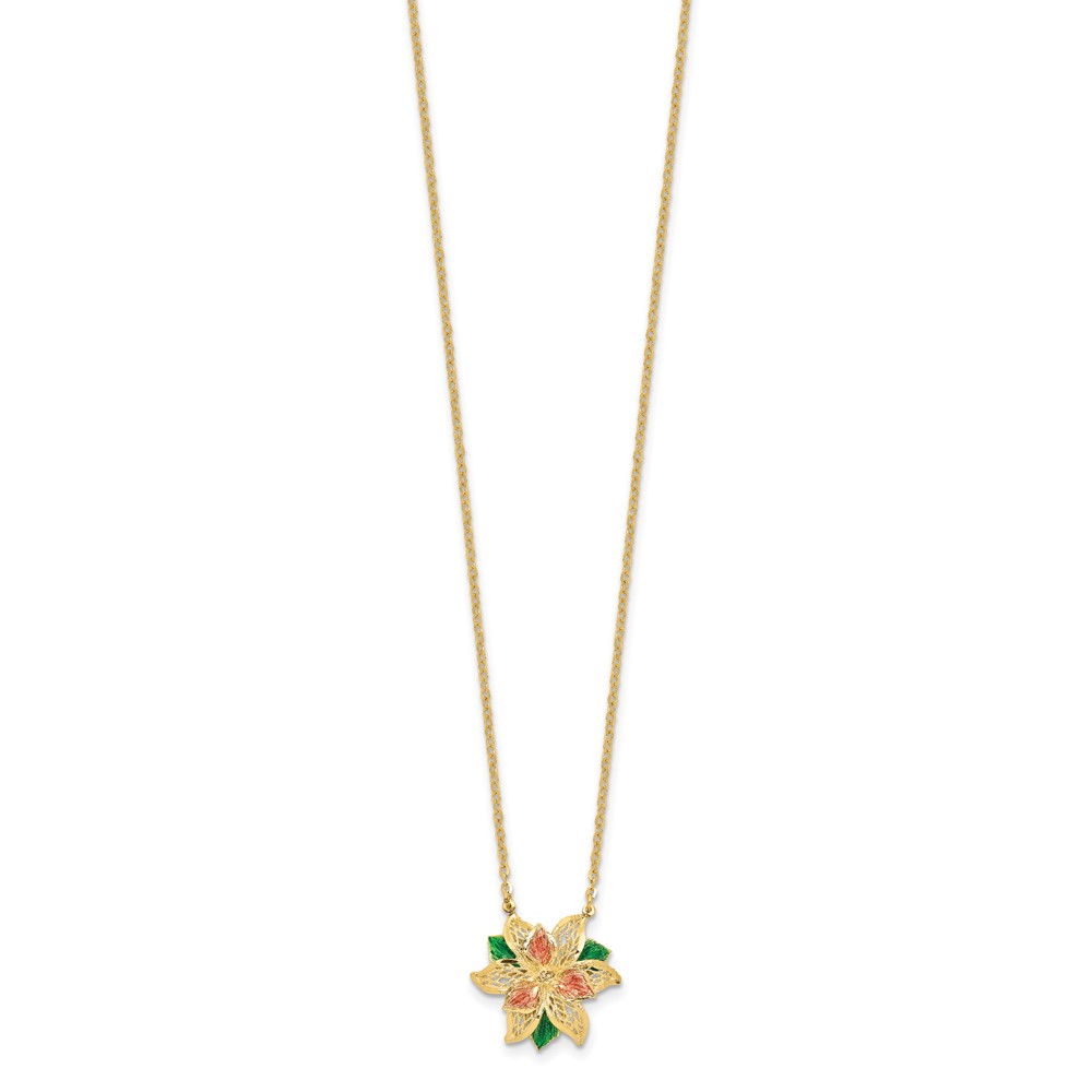 Leslie's 14k Polished and Textured Enameled Flower Necklace