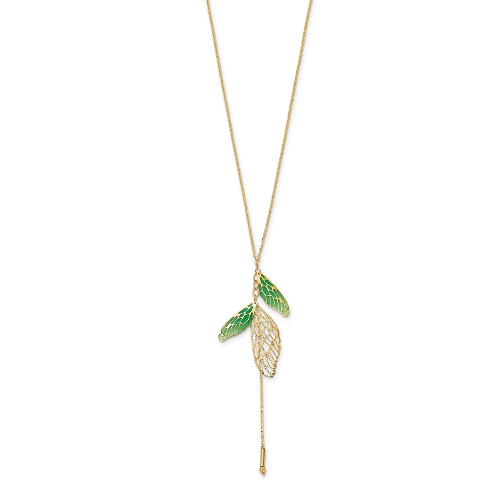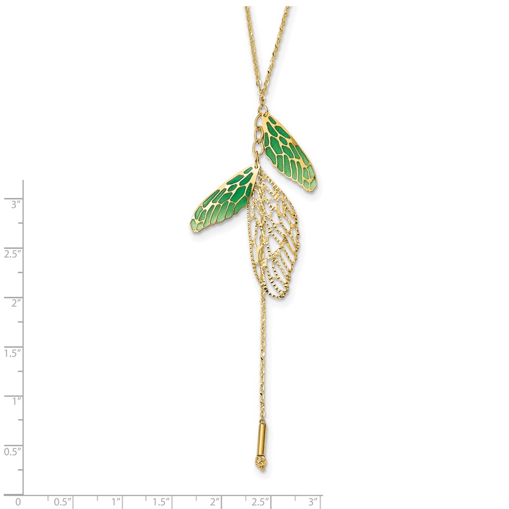 Leslie's 14k Polished Green Enamel Butterfly Wing Y-drop Necklace