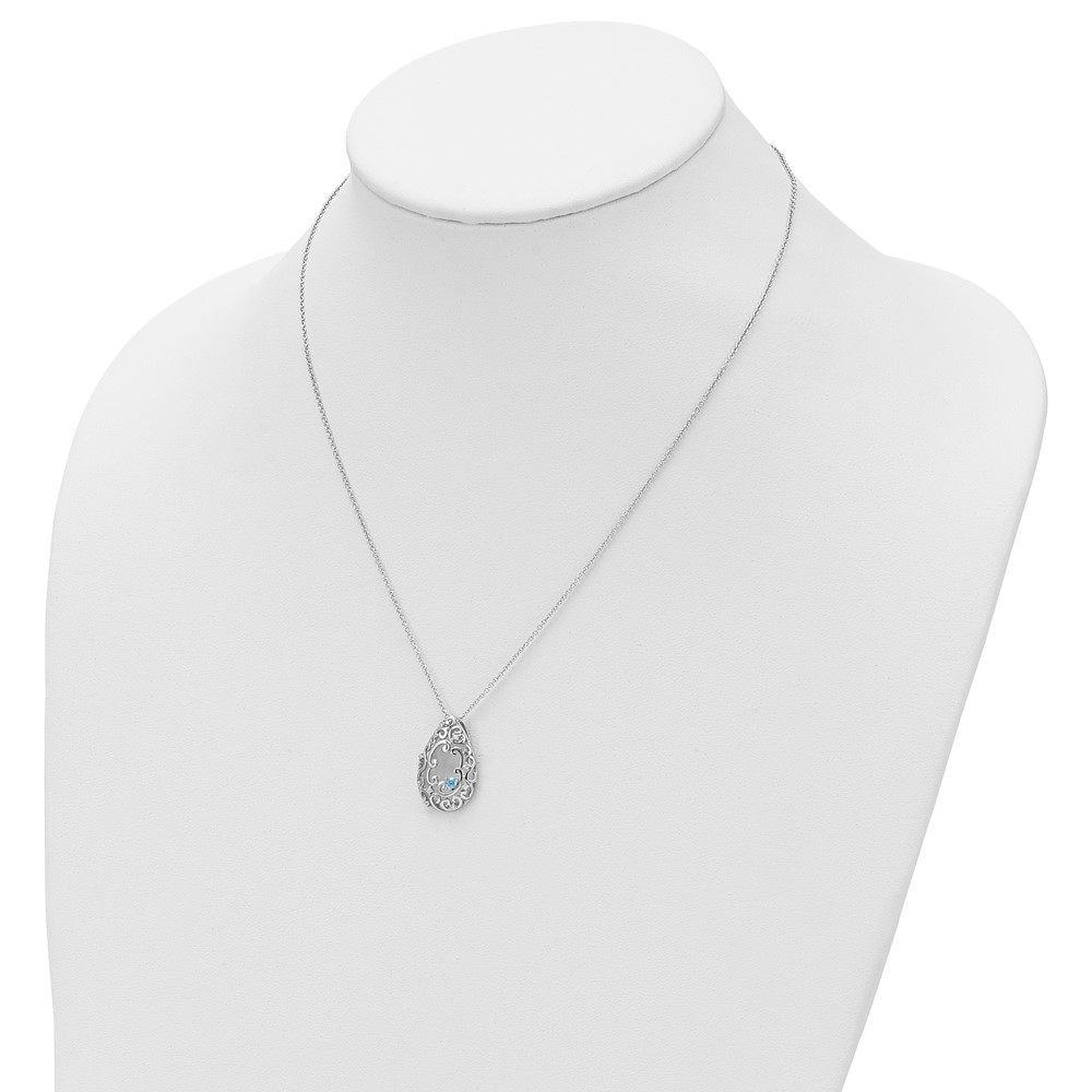 Sentimental Expressions Sterling Silver Rhodium-plated Blue and Clear CZ In Memory of My Father 18in Necklace