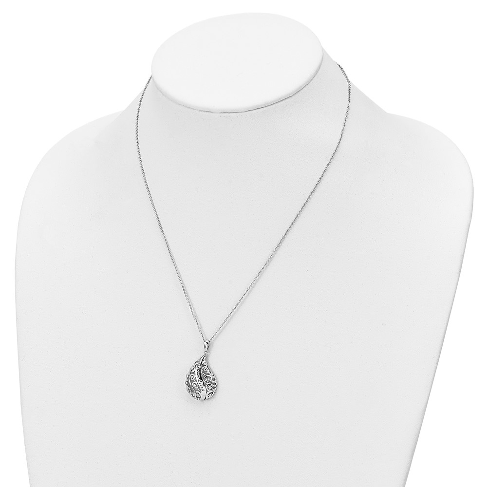 Sentimental Expressions Sterling Silver Rhodium-plated Antiqued CZ Forever Loved Forever Missed 18 Inch Necklace