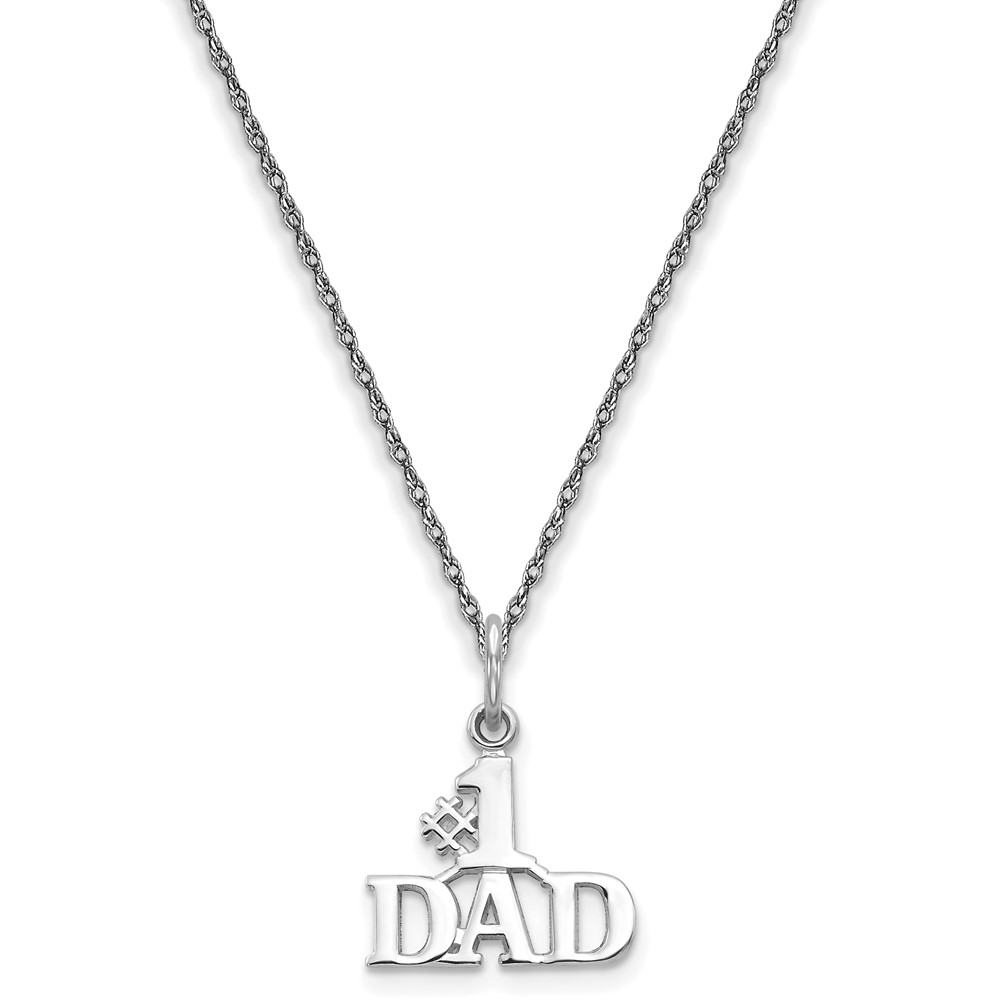 14k White Gold #1 DAD Charm w/ 18in Chain