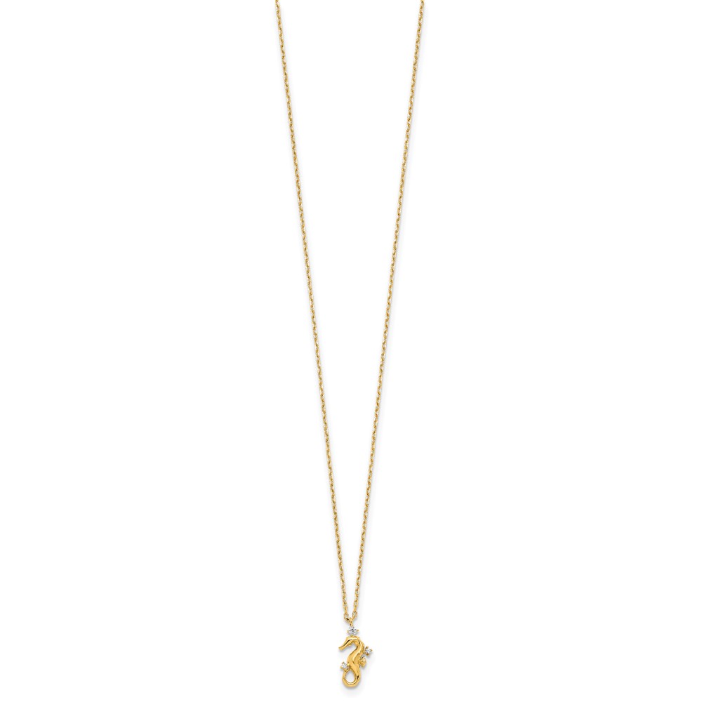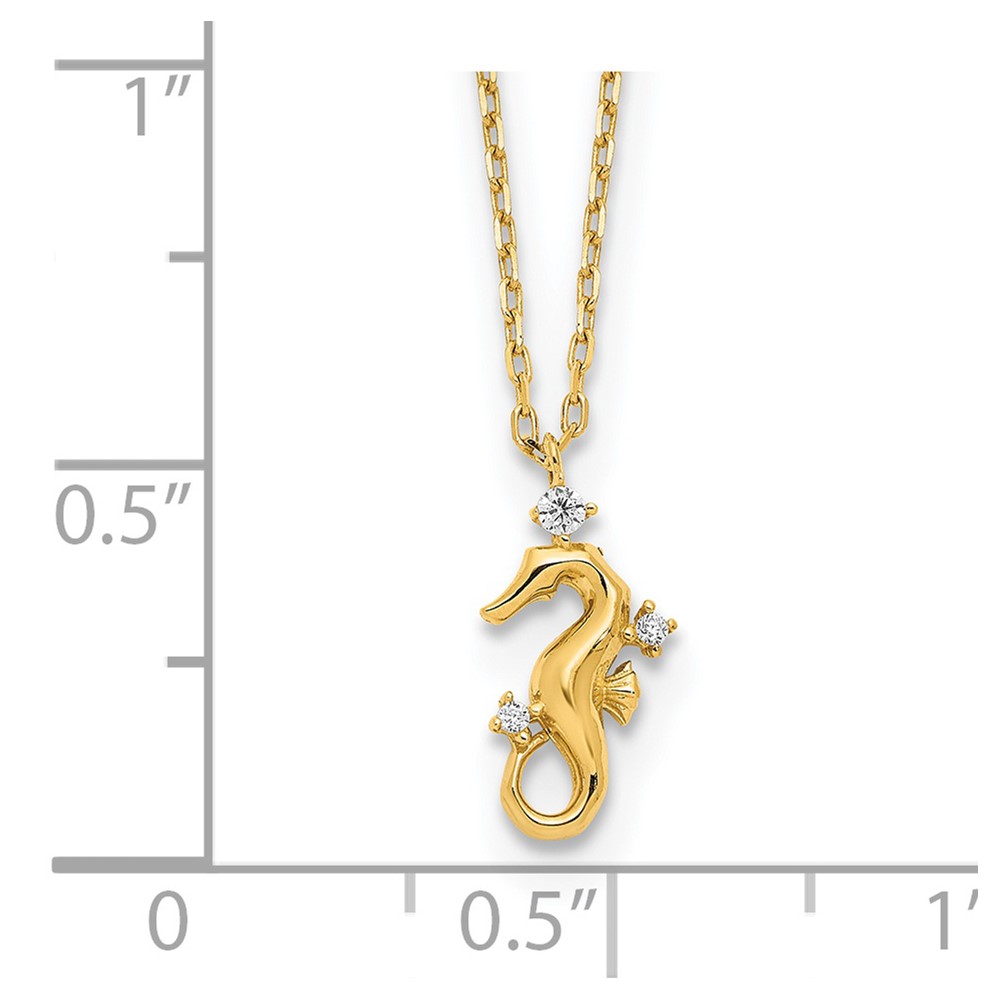 14k Yellow Gold Polished CZ Seahorse w/1.25 in ext Necklace