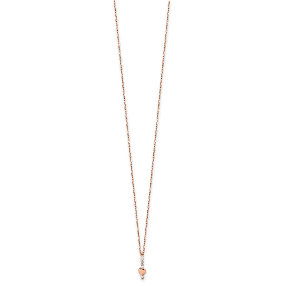 14k Rose Gold Polished CZ Heart w/1.25 in ext Necklace