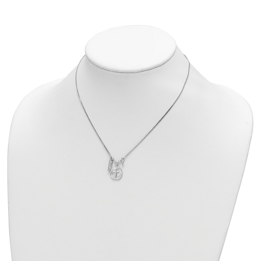Sterling Silver Rhodium-plated Satin Cross/Hope/CZ w/1.5in Ext Necklace