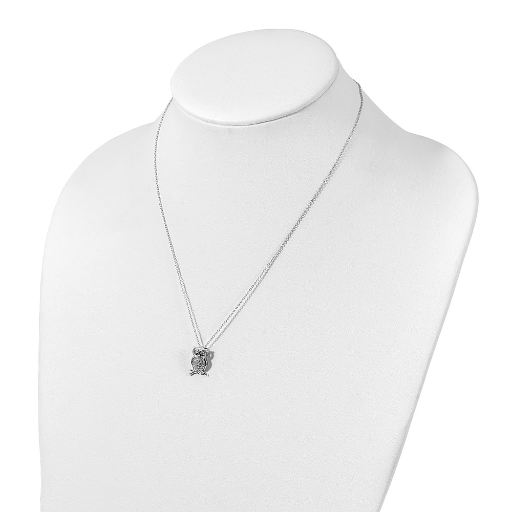 Sterling Silver Polished Rhodium-plated Green/Clear CZ Owl 18in Necklace