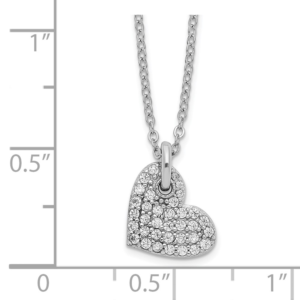 Sterling Silver Rhodium-plated Polished CZ Heart Necklace
