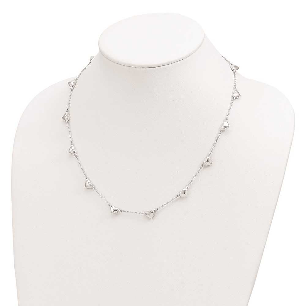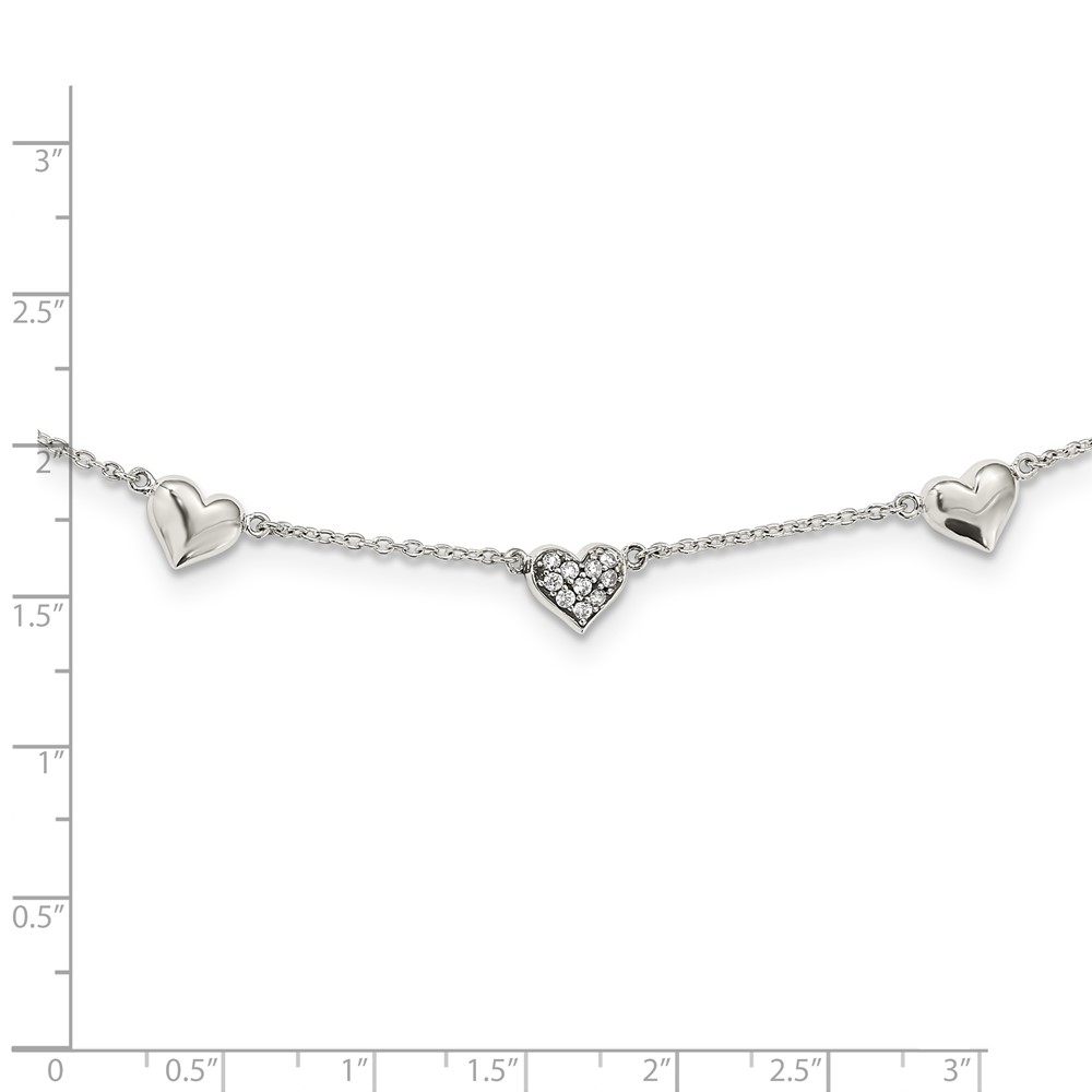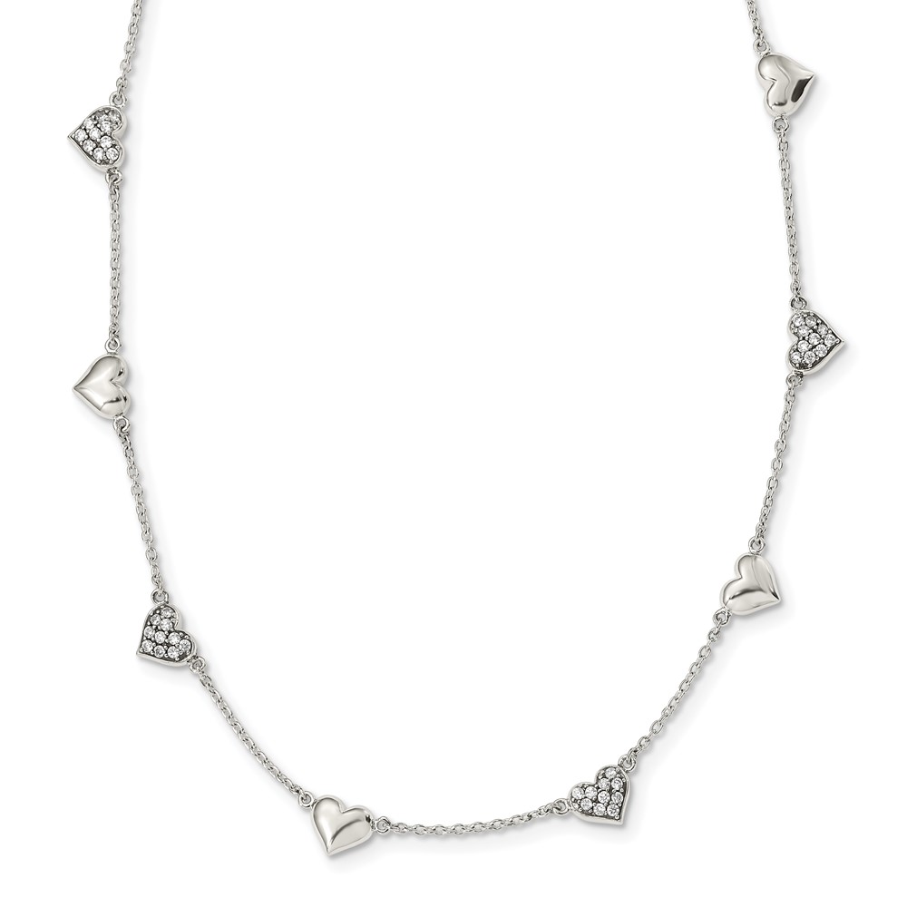 Sterling Silver Antiqued CZ Heart 17.5in w/2in ext Necklace