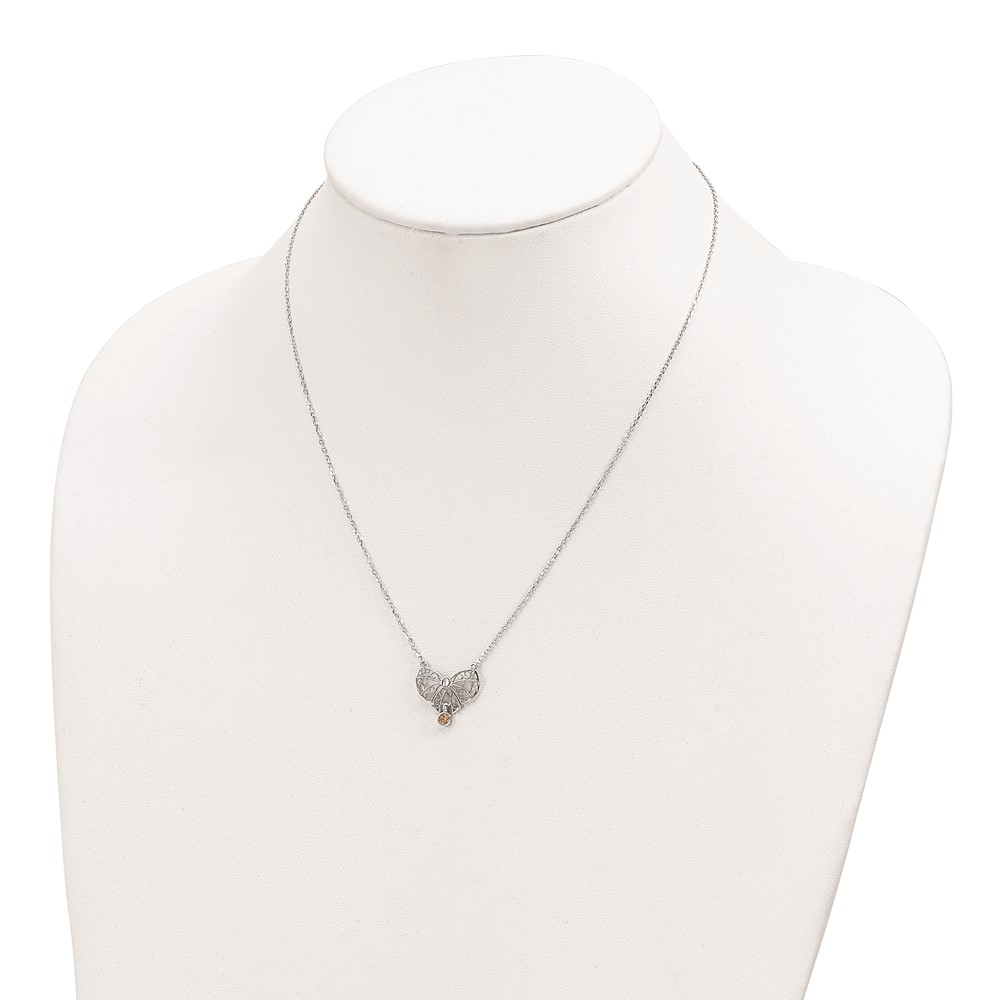 Sterling Silver Rhodium-plated Polished Nov. Bow CZ Birthstone Necklace