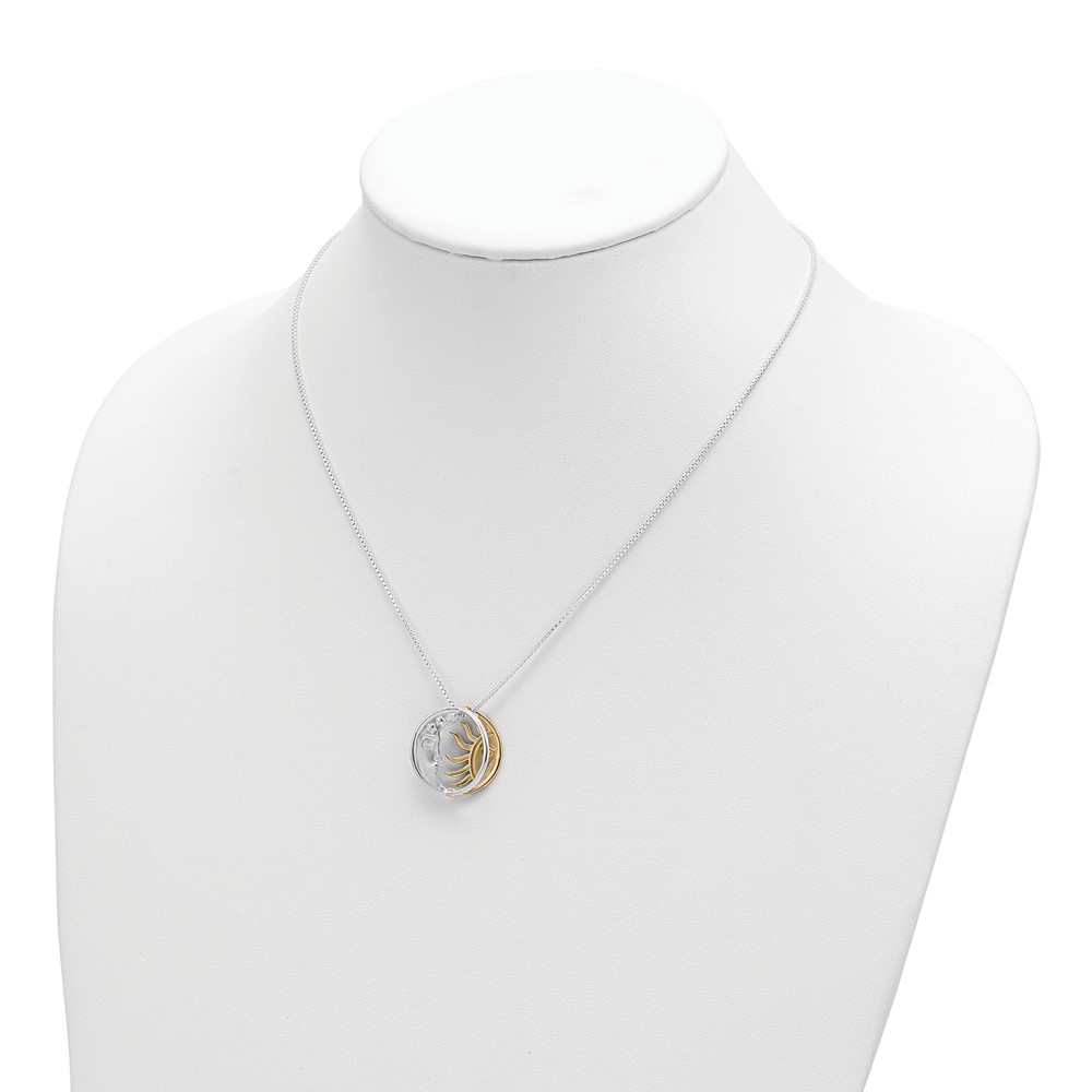 Sterling Silver & Gold-tone Polished Sun & Moon Necklace