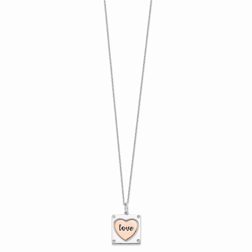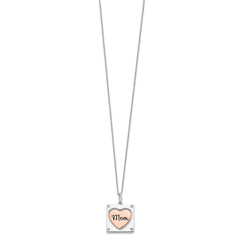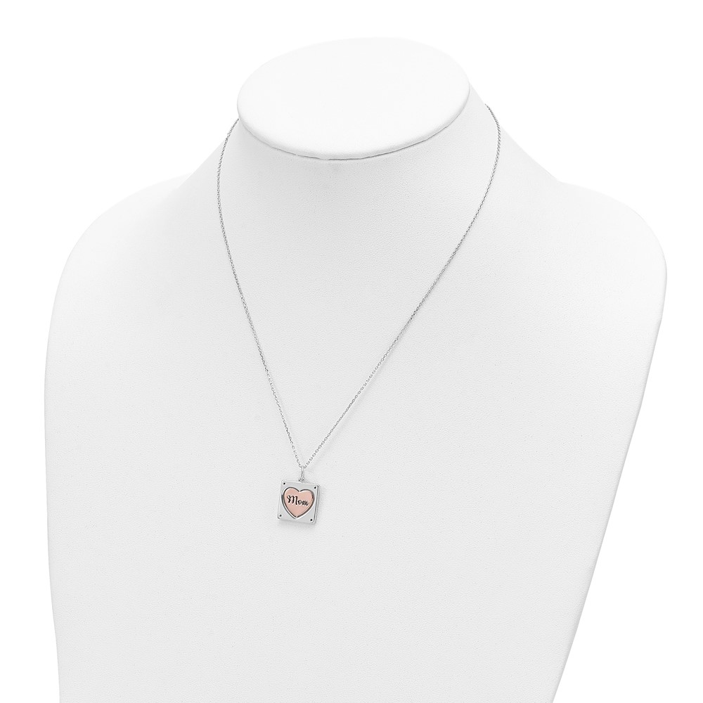 Sterling Silver RH-plated Rose-tone MOM/LOVE Heart Center Spins CZ w/2in ex
