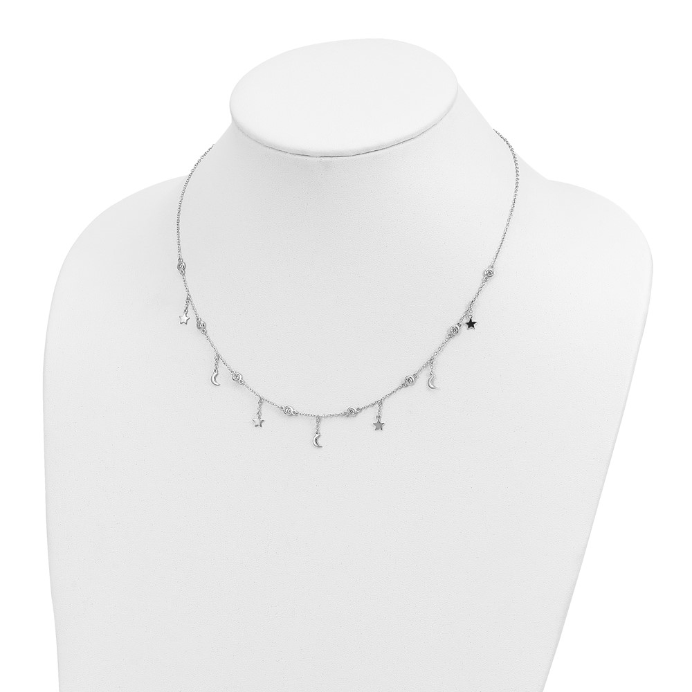 Sterling Silver Rhodium-plated Polished CZ Necklace