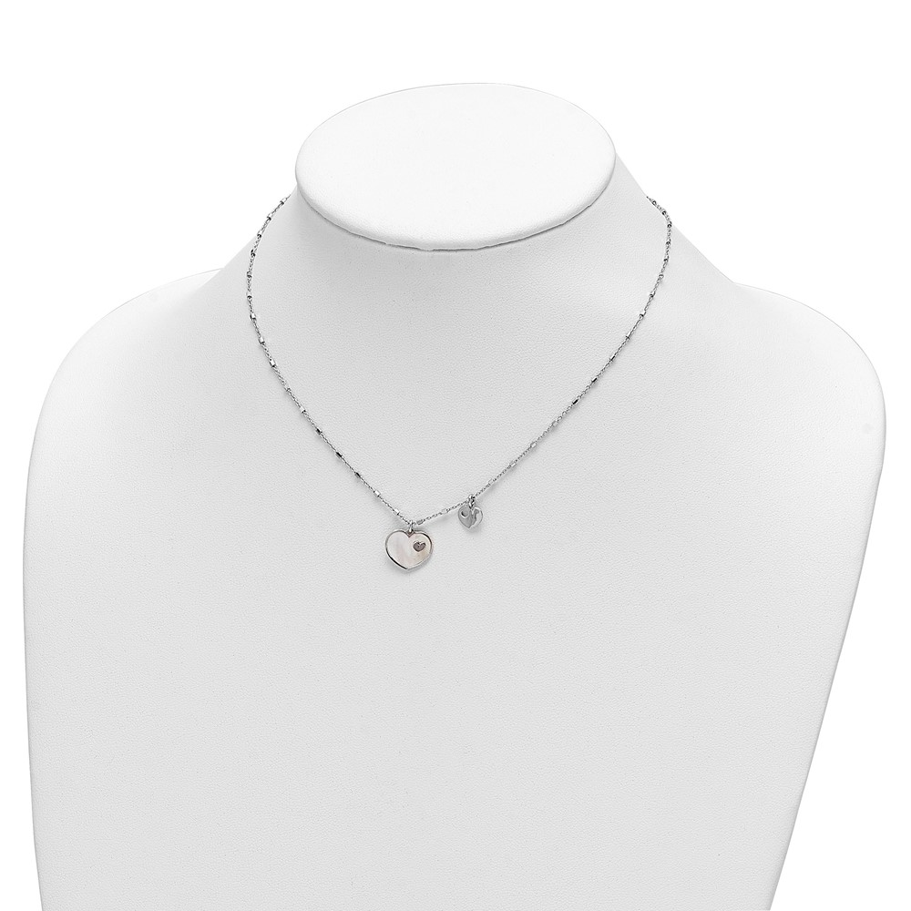 Sterling Silver Rhodium-plated Mother of Pearl Heart w/1 in Ext Necklace