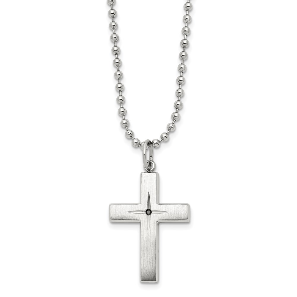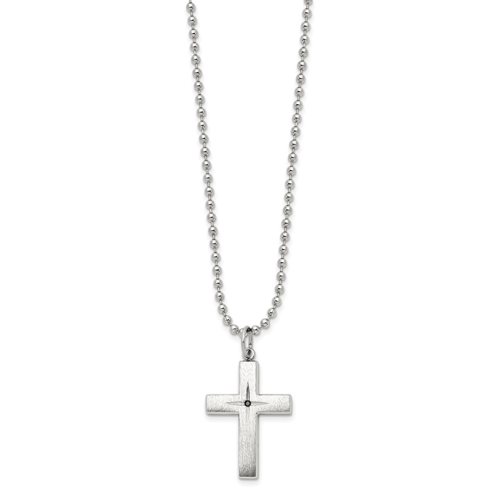 Chisel Stainless Steel Brushed and Polished 0.015 carat Black Diamond Cross Pendant on a 24 inch Ball Chain Necklace