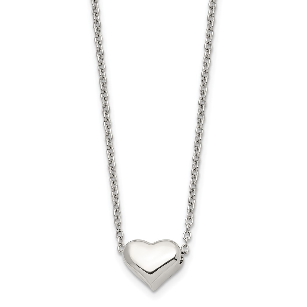 Chisel Stainless Steel Polished Heart on a 16.5 inch Cable Chain with a 2.5 inch Extension Necklace