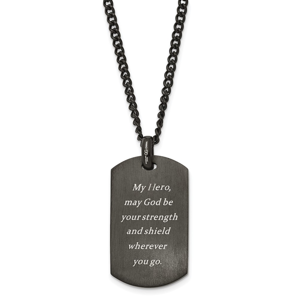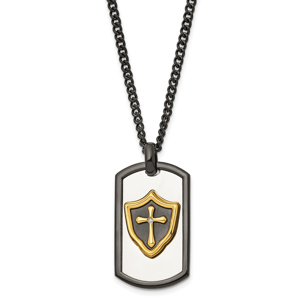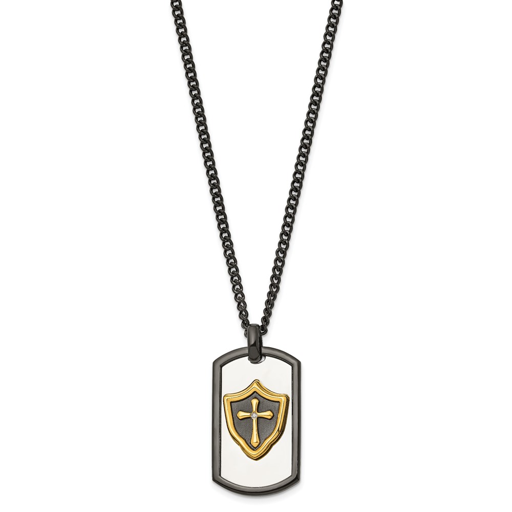 Chisel Stainless Steel Polished Black and Yellow IP-plated with CZ HERO Dog Tag on a 24 inch Curb Chain Necklace