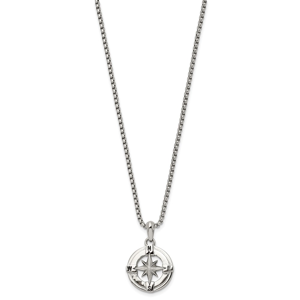 Stainess Steel Polished Compass Necklace