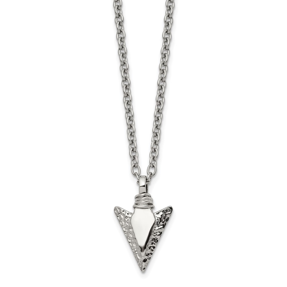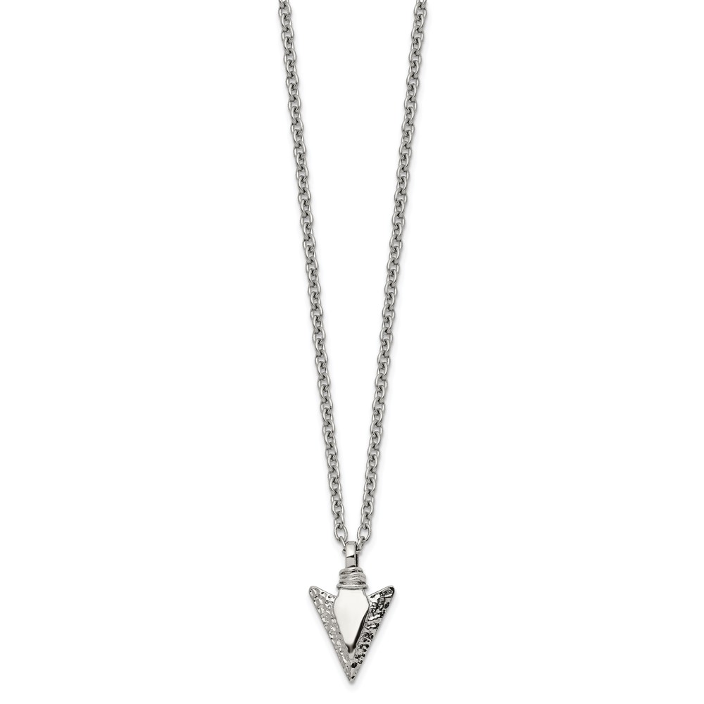 Chisel Stainless Steel Brushed and Polished Arrowhead Pendant on a 19.5 inch with .75 inch Extension Cable Chain Necklace