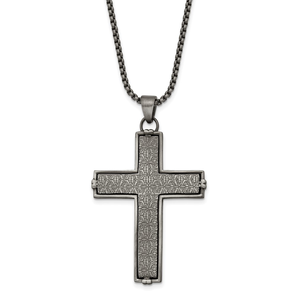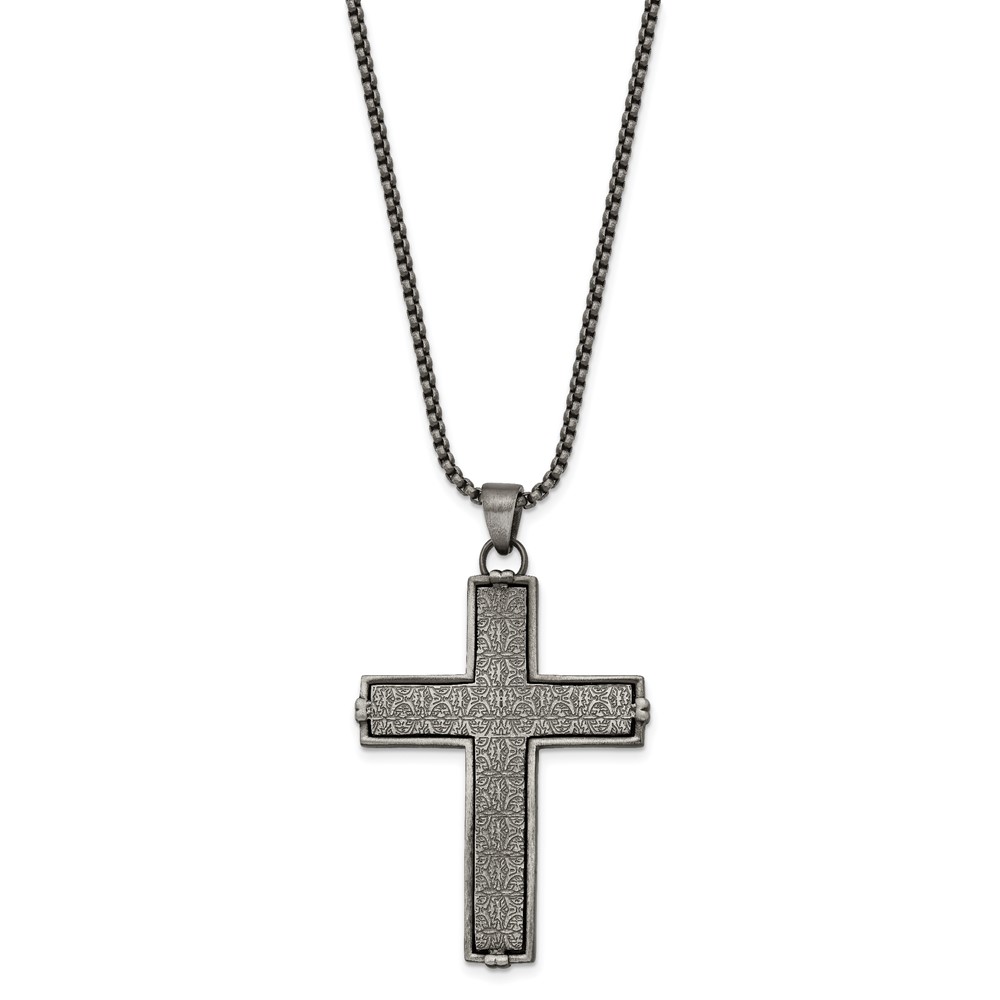 Chisel Stainless Steel Antiqued and Textured Cross Pendant on a 24 inch Rope Chain Necklace